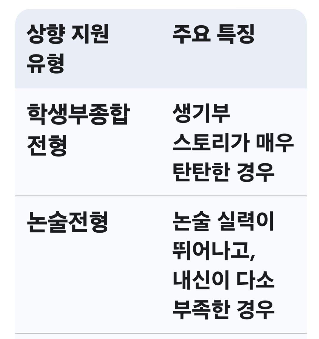 상향 지원은 단순히 높은 대학에 원서를 넣는 것이 아닙니다. 자신의 합격 가능성을 최대한 끌어올릴 수 있는 전형을 찾아야 합니다.