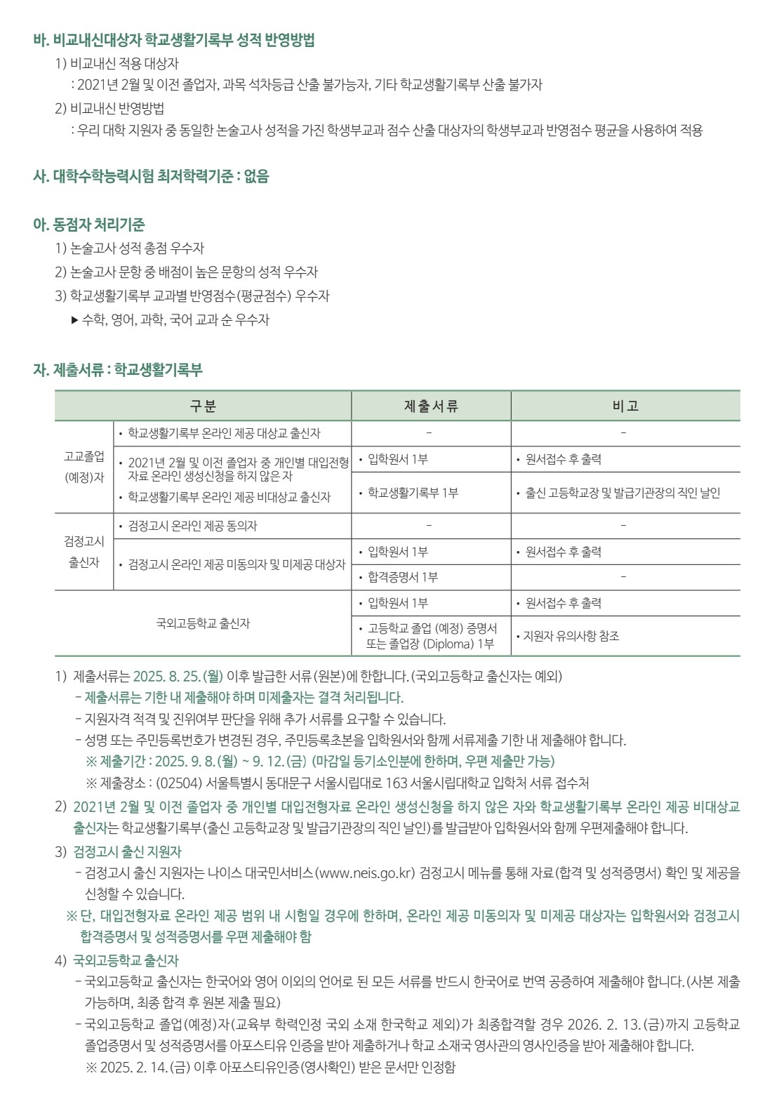 • 인터넷 원서 접수: 2025년 9월 8일(월) 10:00 ~ 9월 12일(금) 18:00